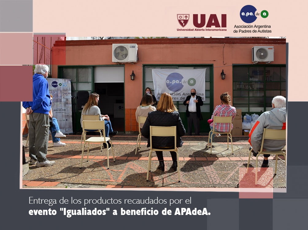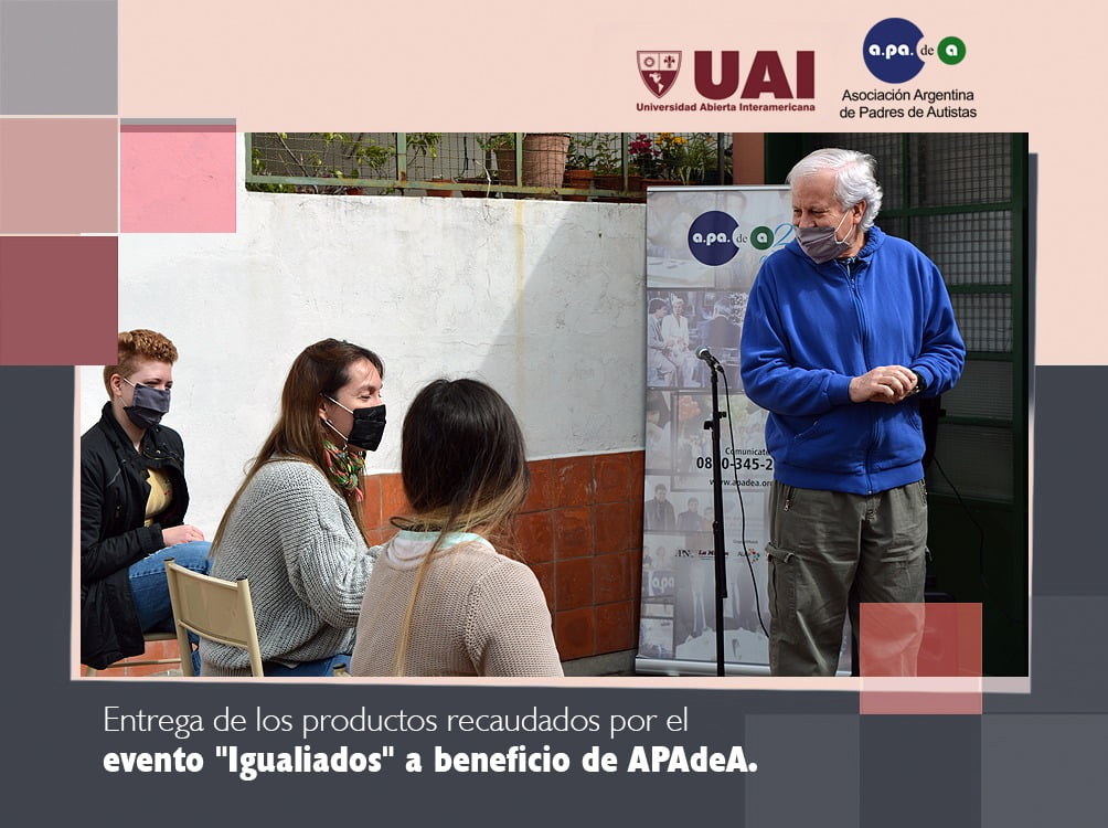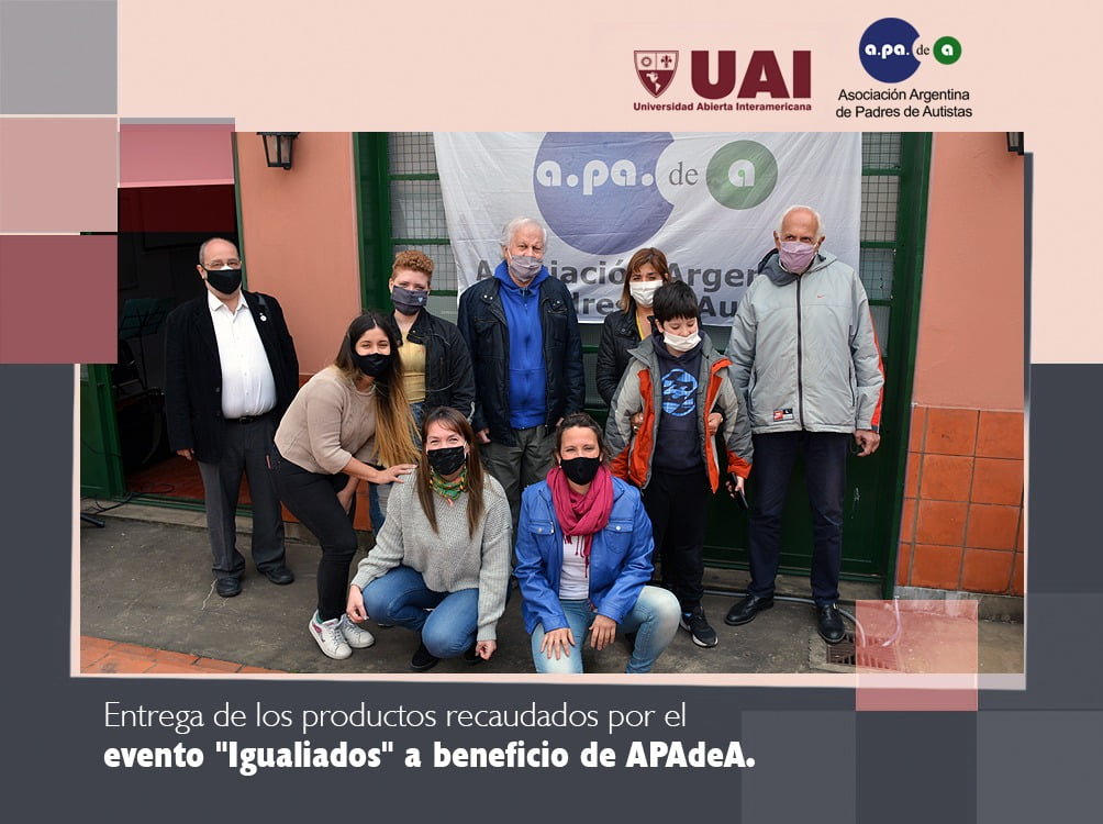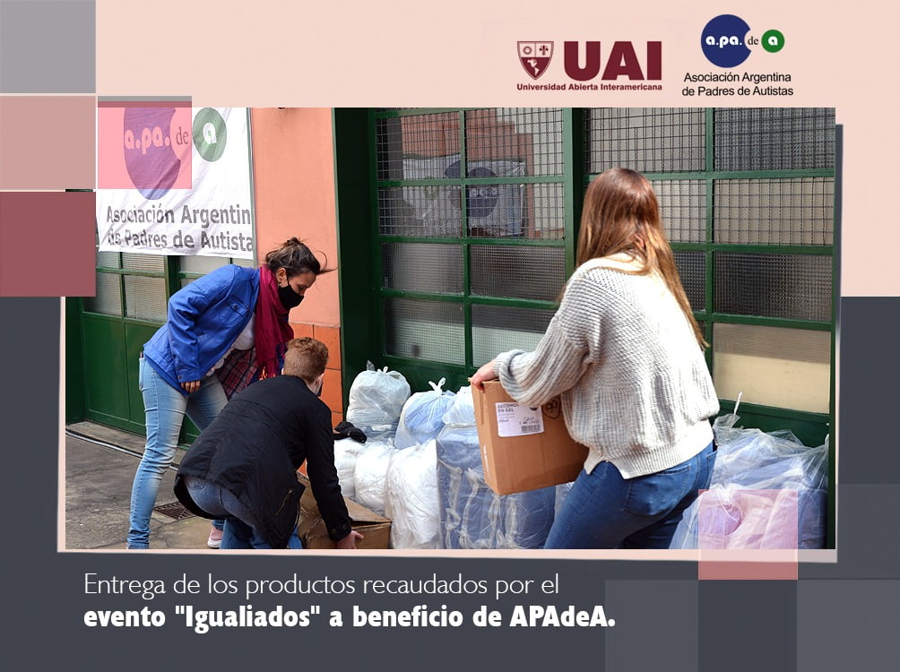 La Asociación Argentina de Padres de Autistas – APAdeA recibió las donaciones recaudadas por el evento virtual Igualiados que se llevó a cabo por instagram el pasado 10 de julio de 2021 y fue organizado por estudiantes de la asignatura Planificación y Organización de Eventos de la carrera Licenciatura en Relaciones Públicas de la Universidad Abierta Interamericana (UAI). El evento a beneficio de APAdeA, que contó con sorteos, música en vivo y una entrevista exclusiva al Dr. Horacio Joffre Galibert, fundador y presidente interinstitucional del Grupo APAdeA, logró recaudar elementos de protección contra el COVID-19 que serán utilizados por los profesionales que realizan evaluaciones presenciales en nuestra Sede de Inclusión Social ubicada en Av. Pueyrredón 1443 piso 12 oficina B, Ciudad Autonoma de Buenos Aires.